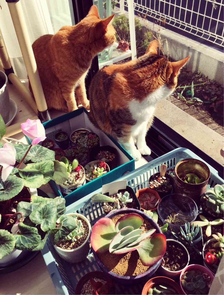 ニャにを見てるのかニャ~?(=^・^=) ウチのネコはカミカミしてくれるので、なかなか植物を部屋の中に置けませんデス (T_T)
