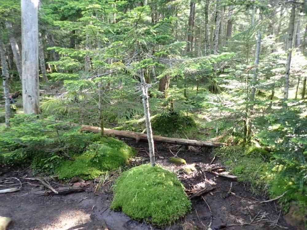 根元がこんもりと苔に覆われています。浮島みたいです。樹木は、シラビソなのかコメツガなのかその他なのか判別できません。
