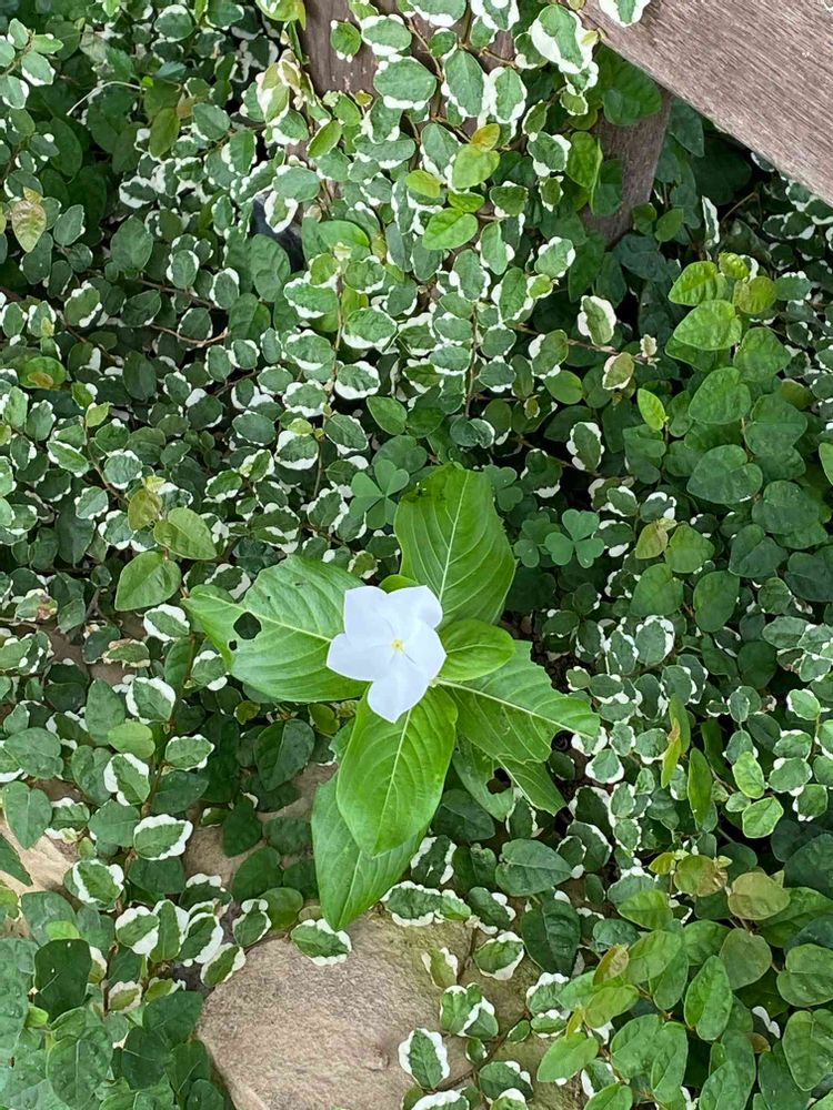あら!こんなところに😊👍こぼれ種で咲いてくれるお花は、サプライズですよね🥰斑入りの葉っぱも美しく、さわやか一枚ですね。