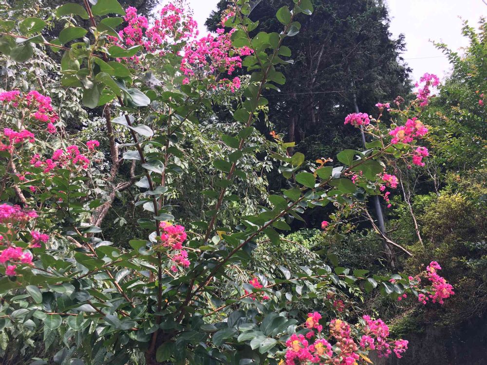 里山のサルスベリはワイルドで、色も濃い気がします!あたり一面緑だからかしら?