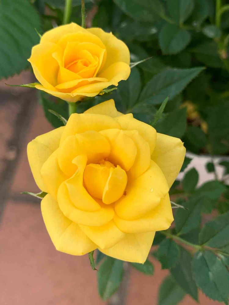 イエローミニチュアローズも並んで咲きました💕一番花が全部終わってからまた次々とつぼみをつけてくれています🌹