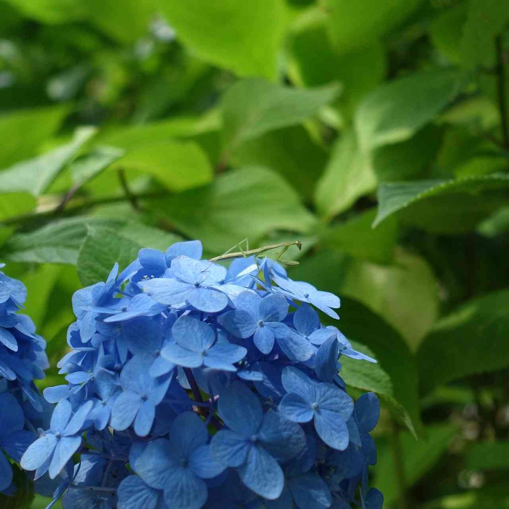 名古屋市の鶴間公園での1ショットです。カマキリが気持ちよさそうにあじさいの上にいました。