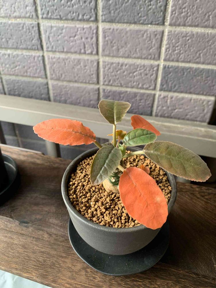 日照条件の違いか?お迎えしてすぐに一部の葉が紅葉し、きれいだなぁと眺めていたのですが…☺️この後触ると簡単に落葉しました。環境調整なんでしょうかねー😆新芽を待ちます🌱