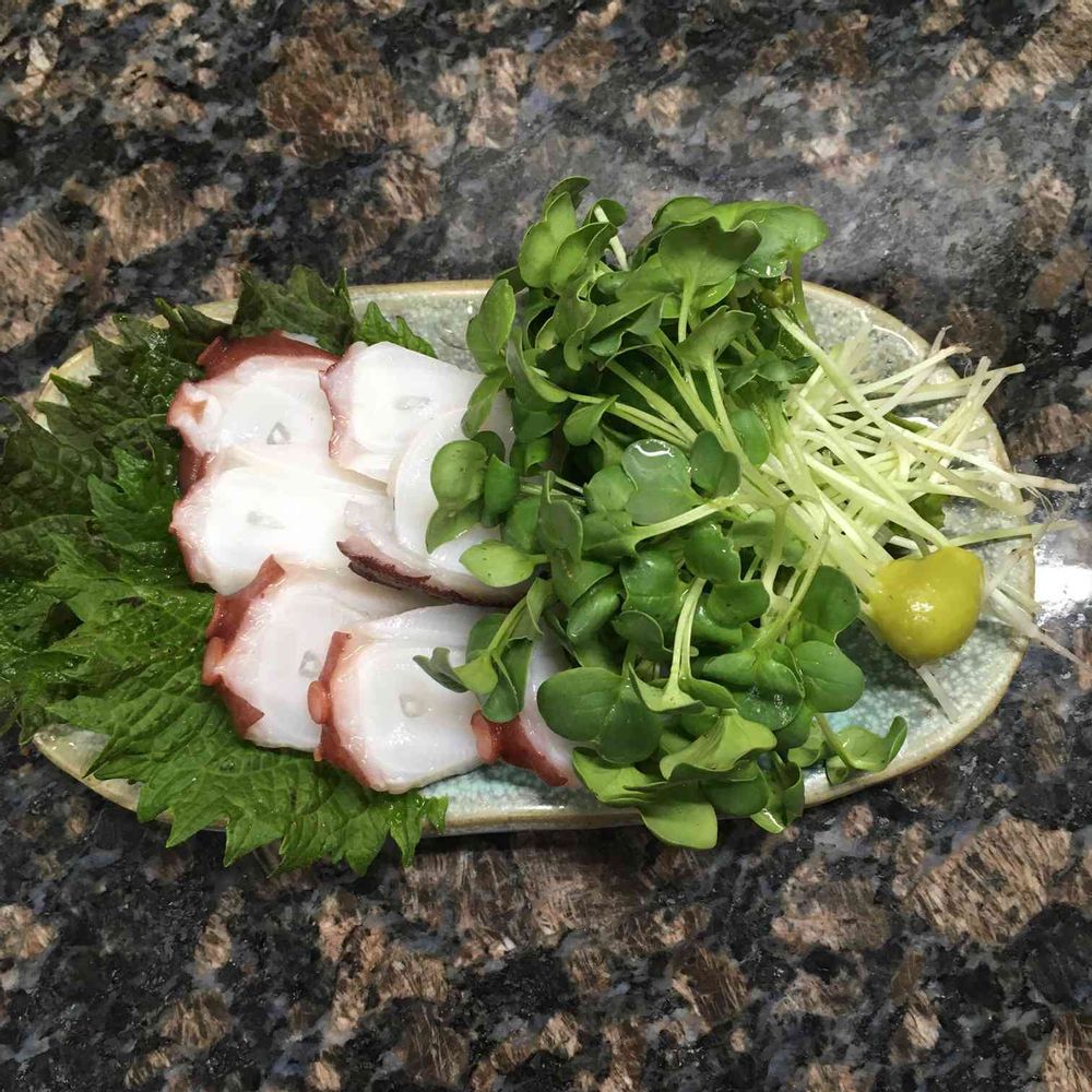 青紫蘇、カイワレ大根とタコ刺身