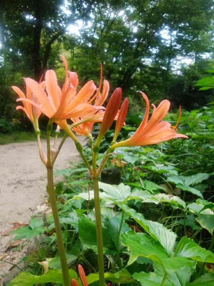 ヒガンバナ科で、春に葉が茂り、枯れてなくなったあとに茎が伸びて、花が咲くそうです🌱ナツズイセンと同じですね🐦