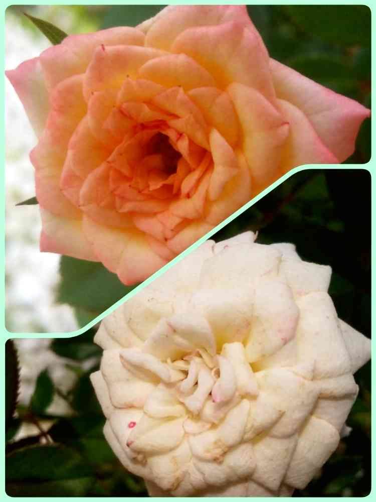 同じミニバラ「ミルキーウェイ」🌹なんだけど、⬆️上が最近雨が降らず、ずっと水道水を水やりしていたpic、⬇️下が雨がずっと続いて雨水で過ごしていた頃のpic📷