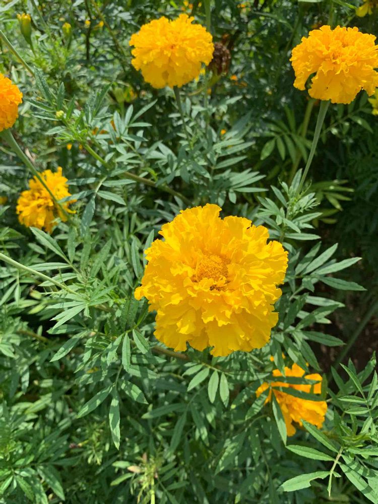 お散歩コースのお花達です!マリーゴールドが群生していました〜!🥰💐💛🥰