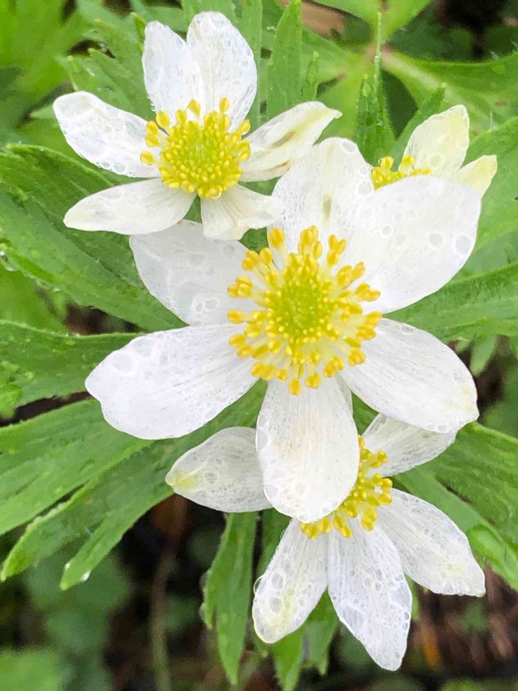 雨に濡れて一段と神々しいハクサンイチゲです。