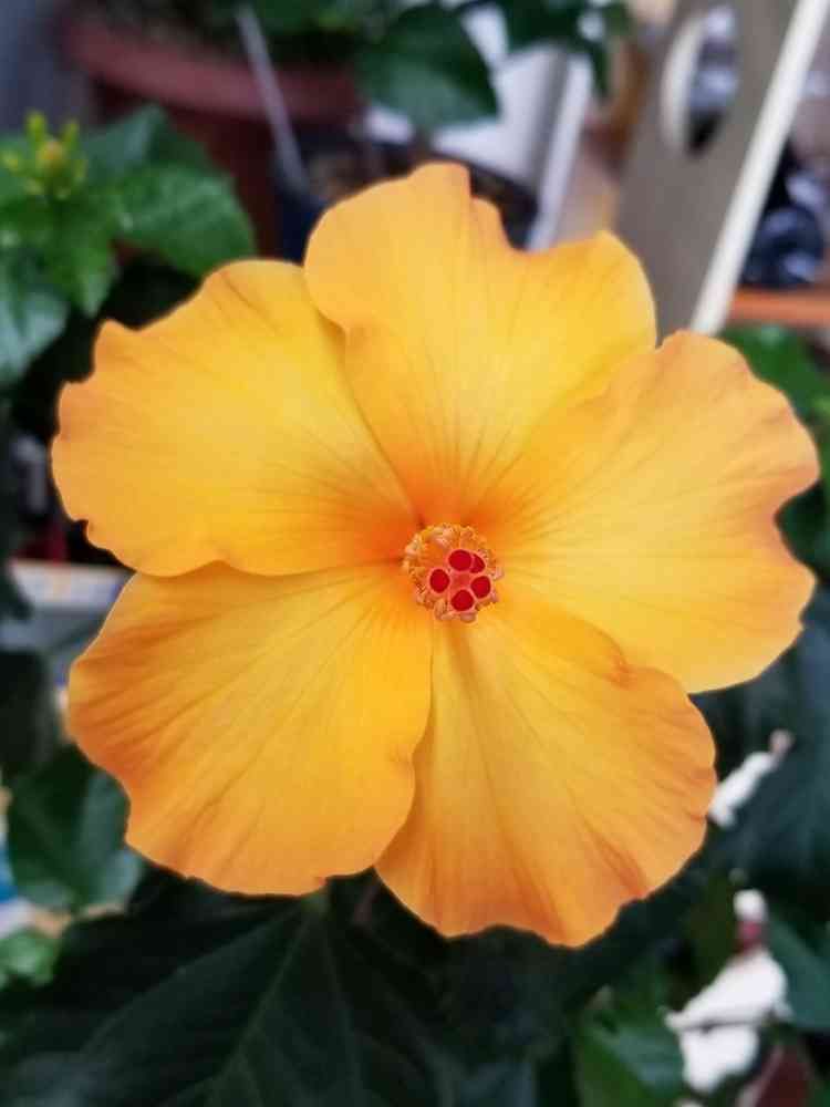 オレンジ色のハイビスカスまた、ひとつ咲きました。