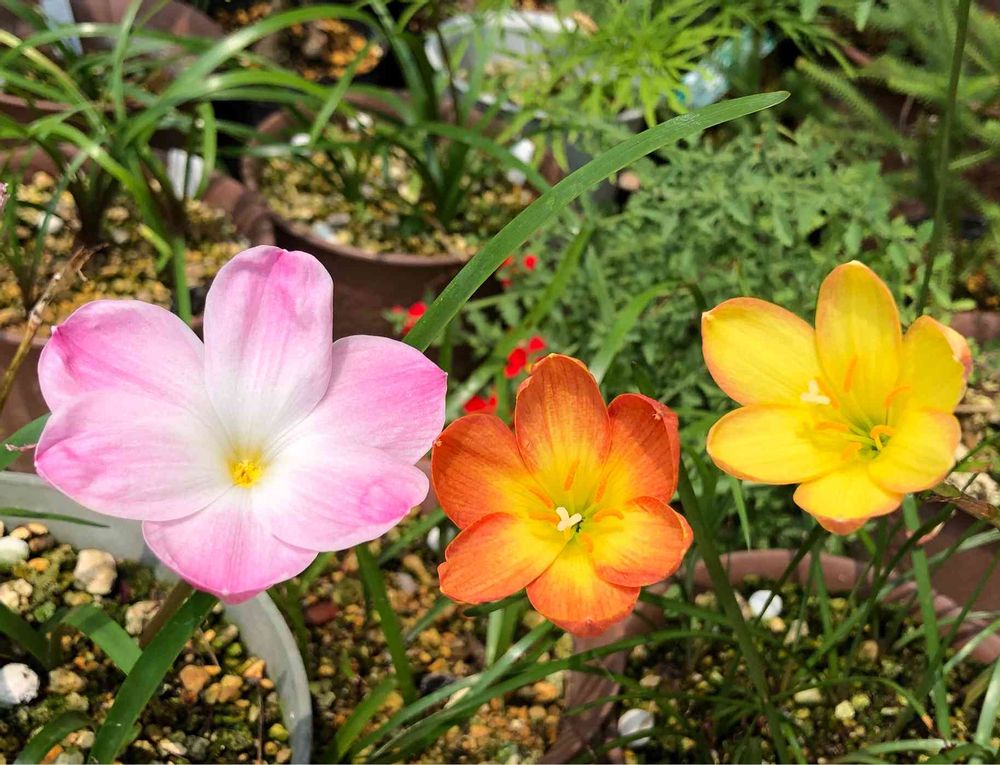 レインリリーが3種類咲いたので、並べて記念撮影✨。