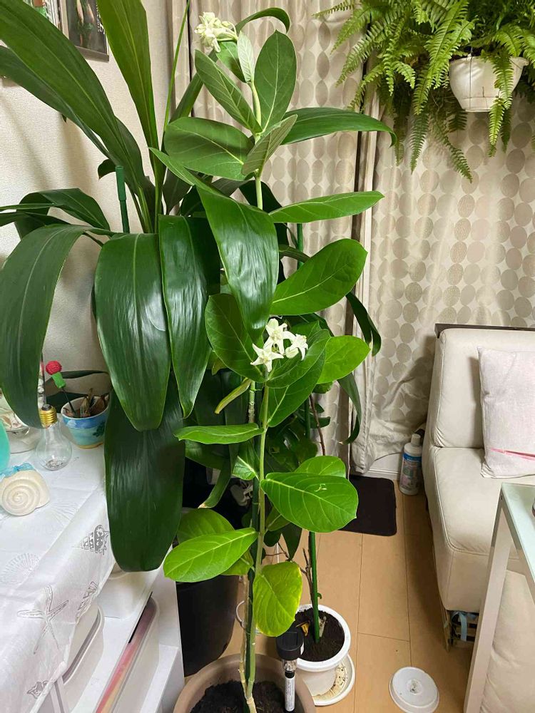 風が強くなってきたので、クラウンフラワーとハイビスカスの鉢だけお家の中に避難。あとの子達は頑張ってもらいます。