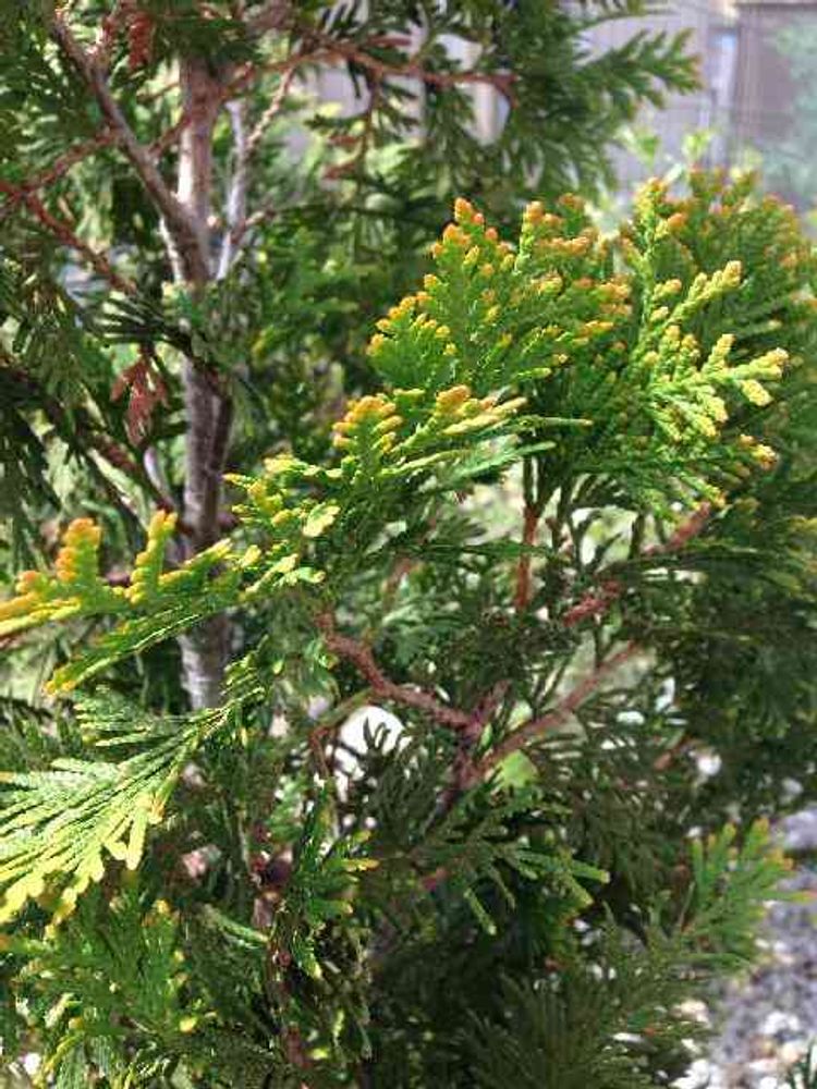 コニファーの葉先が黄色になって名前の通りリボンをまとっているみたいです。