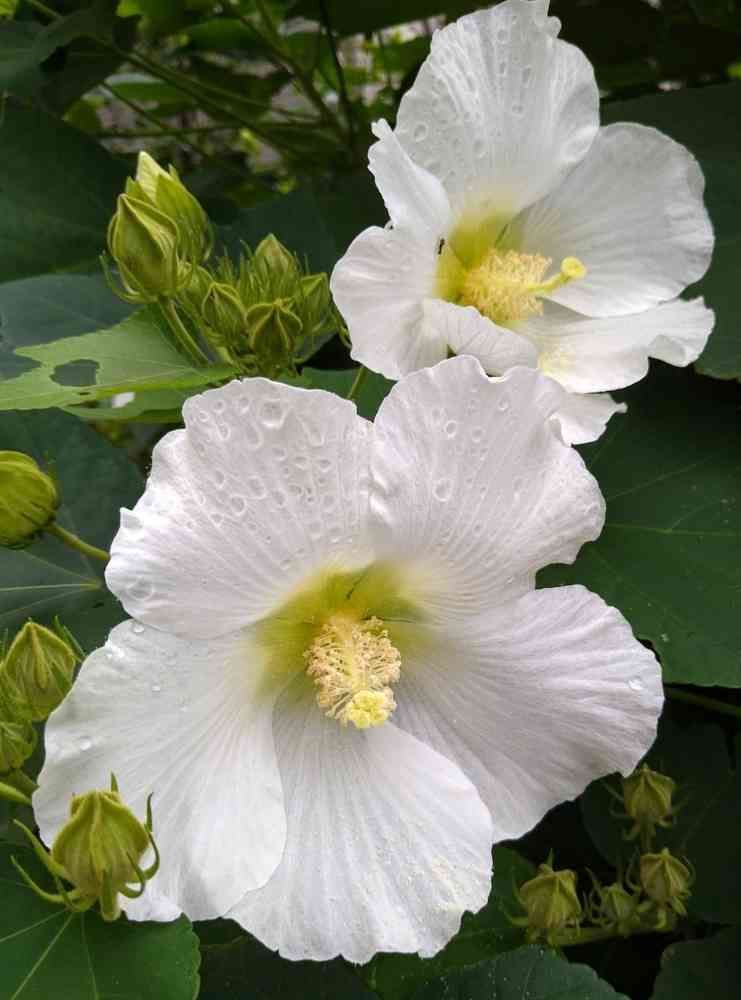 真っ白な芙蓉の花、2つ並んでとても綺麗です✨✨