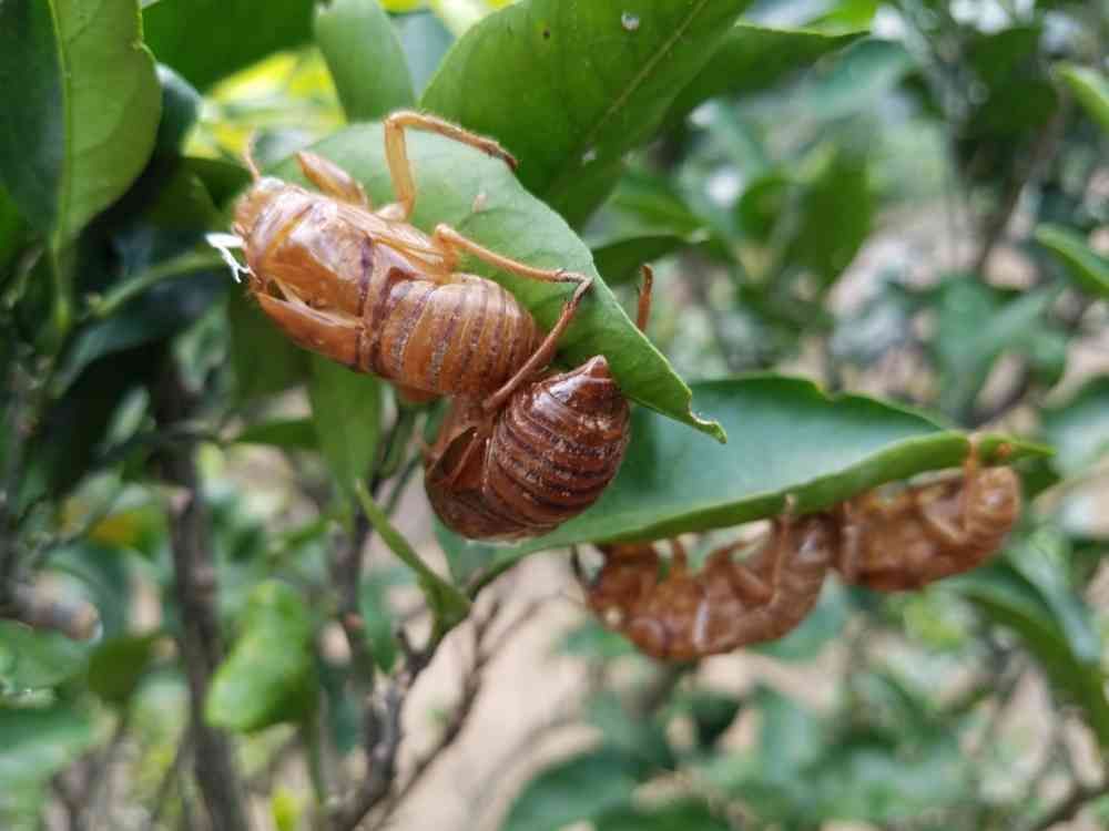 朝、蜜柑の木を見たらこんなにくっついてセミの抜け殻が(笑)この近くにもう一つ。セミの抜け殻は、沢山見るけどこんなにくっついてるのを見るのは初めて(笑)夜、孵化する時どんな光景だったんだろう😊💕何もこんなにくっついて孵化しなくてもいいのに(笑)