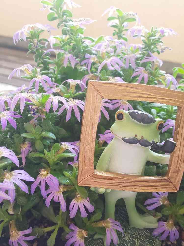今晩は。サンクエールさん珍しいお花ですね。始めて見ました。🐸さんもおひげが立派ですね。笑 楽しいpic見せて頂いてありがとうございます。☺️💕