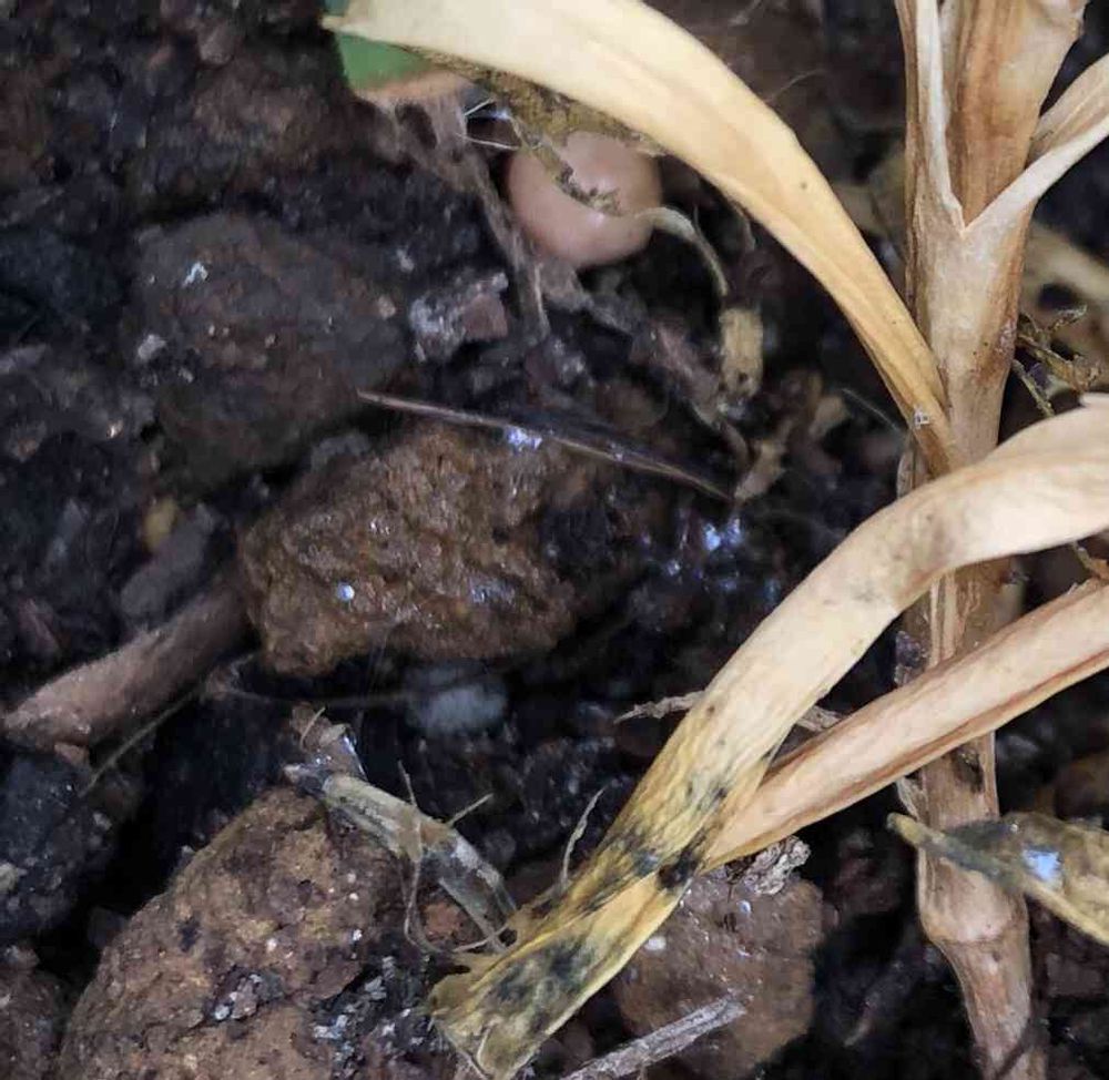 下の土にキラキラした糸を引いたような感じが! これが原因ですか? これはなんでしょうか? どなたか教えてください お願いします(>人<;)