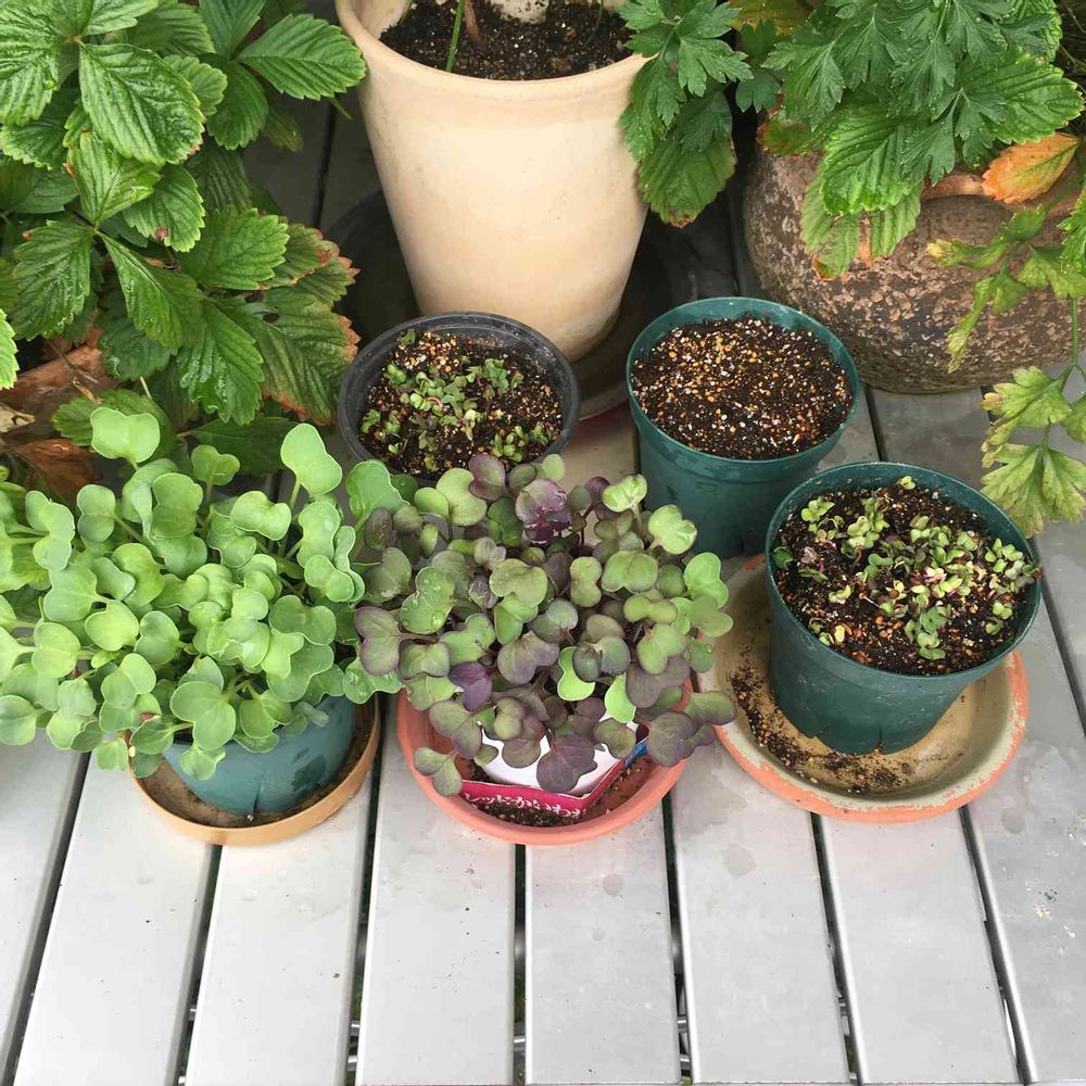 バルコニー/ベランダ,ルビーカイワレ大根栽培,紫カイワレ大根栽培の投稿画像