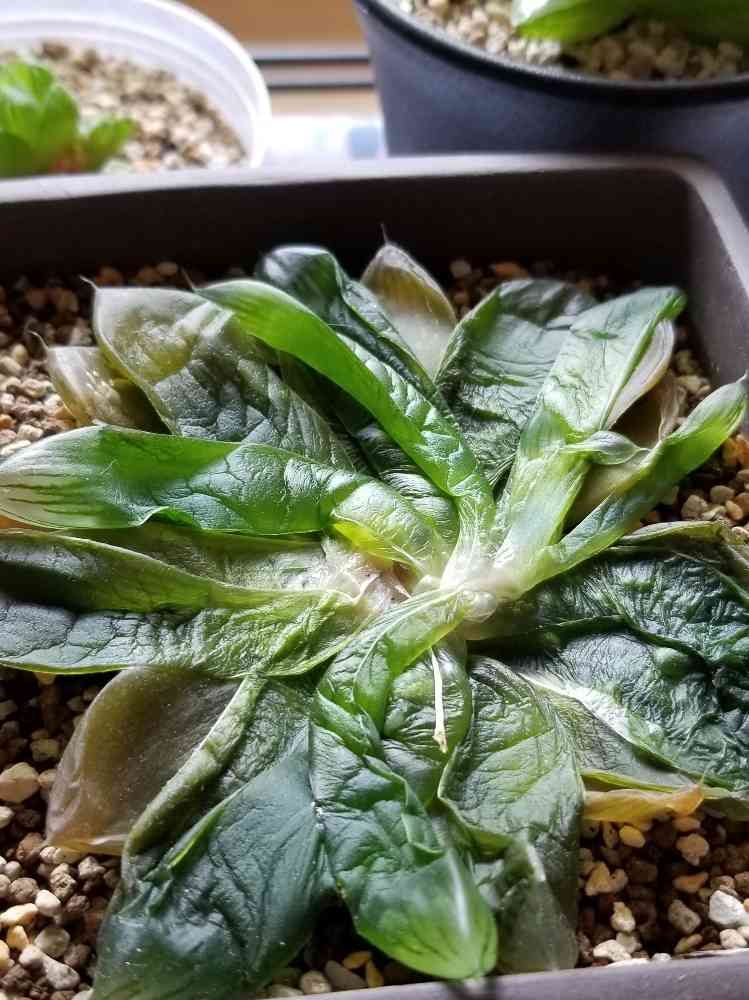 完全に溶けちゃっていますね、この状態だと思います。水分のタイミングと温度の上昇が関係していますね❗️他にも有るようでしたら、通気性を良くして下さい。本来は半日陰で宜しいですが、窓が有れば直日が当たらない様レースカーテンなどを利用するのと、扇風機等などを直接当てるのではなく、天井方向に向けて強にして空気を攪拌して温度を下げて下さい‼️