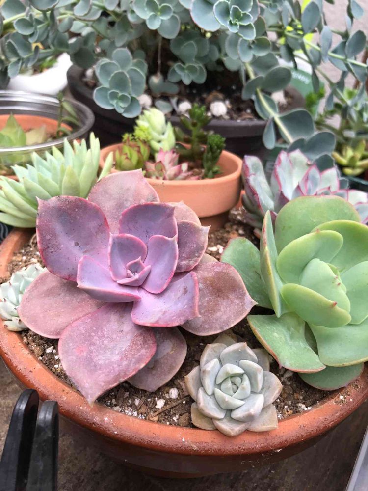 このエケベリアの素焼き鉢、保水性の高い土を使っていました。
