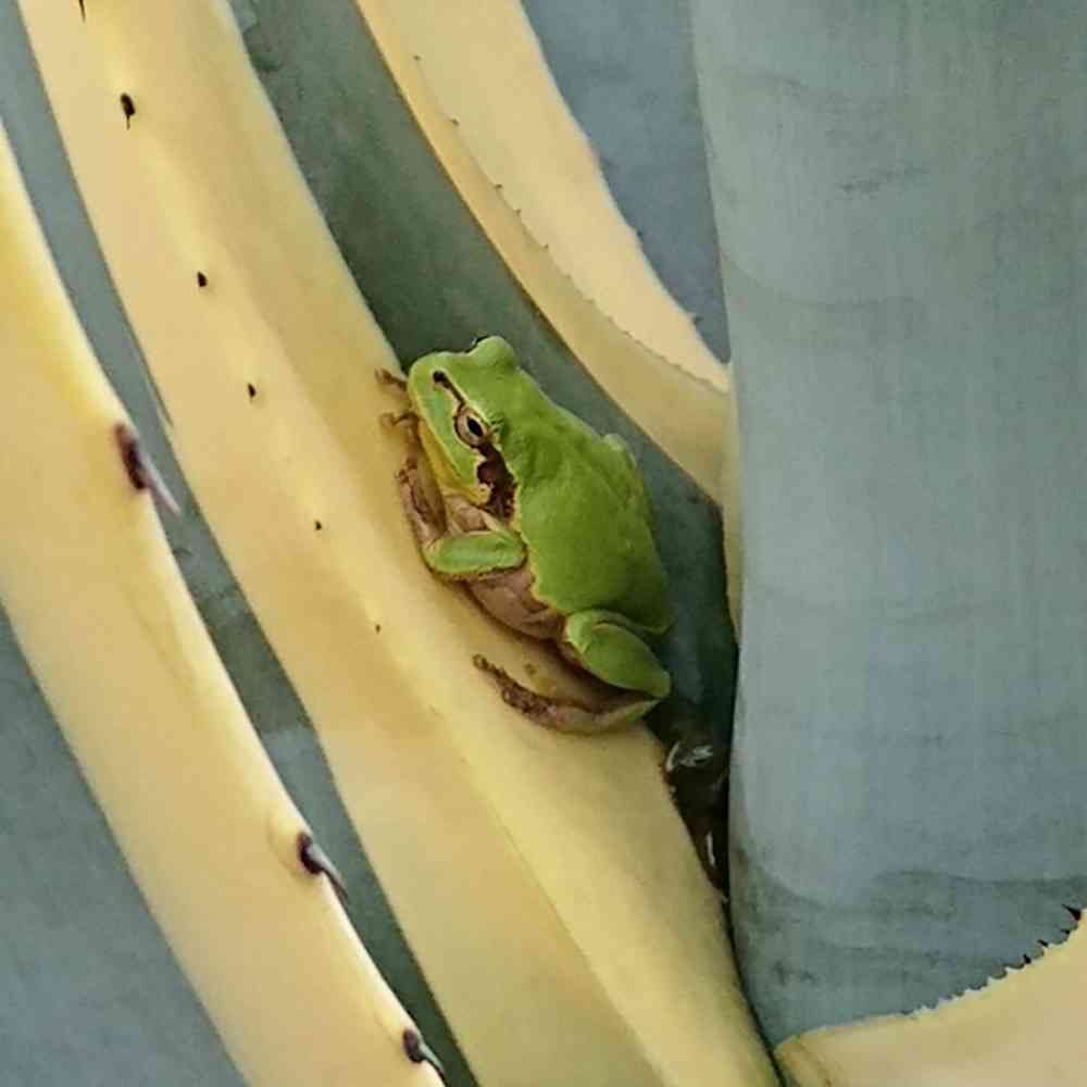 大きなアガベにちょこんと乗っかってました(,,>᎑<,,)