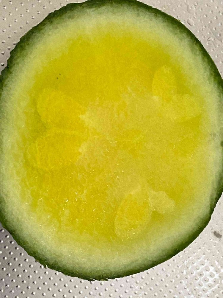 先日収穫したスイカ、一週間冷蔵庫で冬眠しました。切ったら端っこの断面がハート型♥️