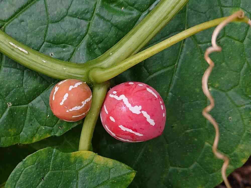 こちらでは、カラスウリは自生していますが、スズメウリは園芸種扱いじゃないかなぁ?