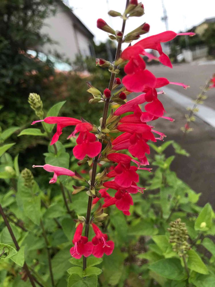 ちりめんうさぎさんのパイナップルセージ,近所へ花散歩の投稿画像