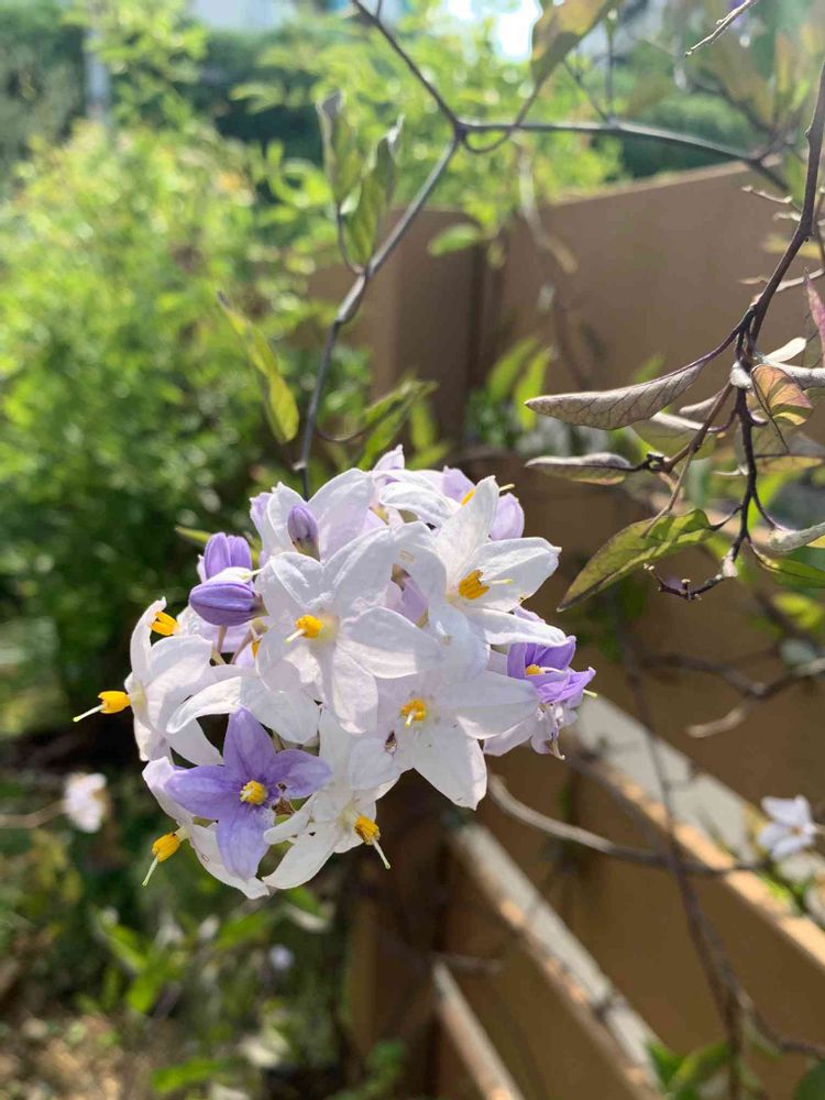 何だか、フェンスに絡まってとってもオシャレです( *ˊᵕˋ* )💗ナスのお花に似てますね(❁*ᵕᴗᵕ )ウンウン