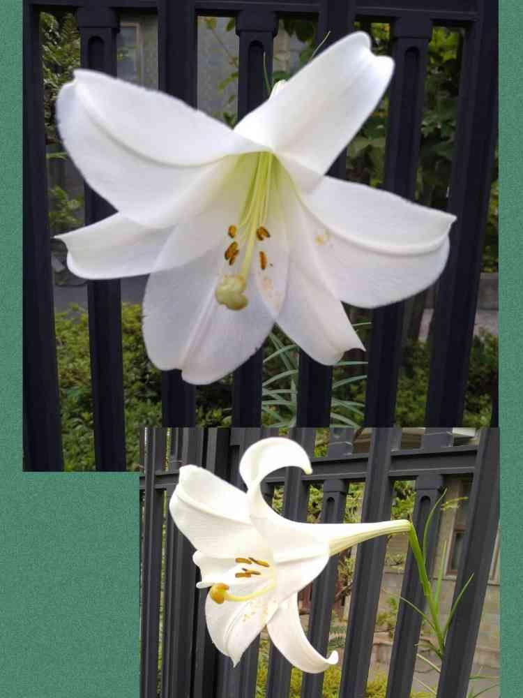 フェンスの間からこんにちわ、可愛いですねー😍葉っぱの形と開花時期から、これはタカサゴユリじゃないかなーと思いますが、どうでしょう?いずれにしても、清楚で美しい白ユリですよね😍