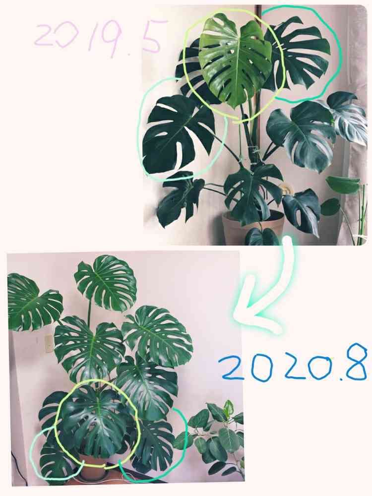 確かに、新しく葉っぱが出ても、古い葉っぱも長持ちするのがモンステラの魅力だと感じていました♪
