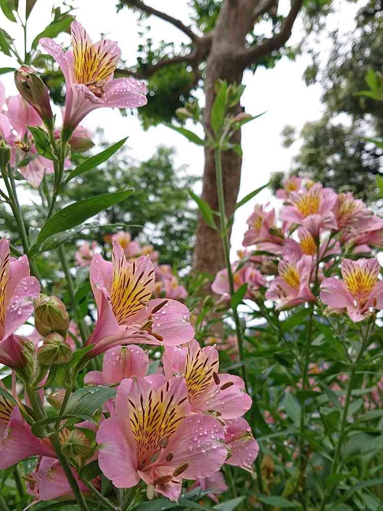 雨上がりの濡れたアルストメリア、なんともステキですね〜😊