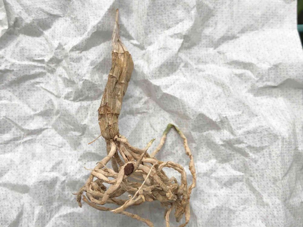 頂いた1本バルブと2本バルブのうち、1本バルブの方です。根っこが豊富にあり安心して植え付けたものの、