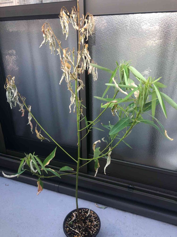 置き場所変えて復活した枝と、少し小さなもう1株は何とか持ち堪えてます😞
