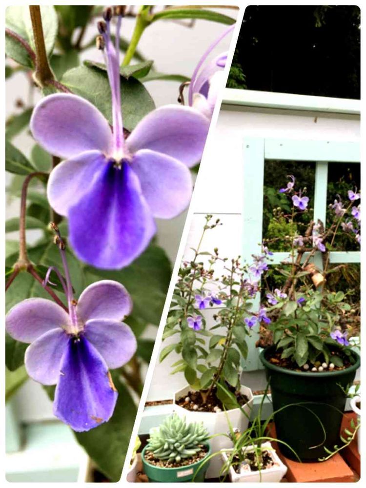 ブルーウイングの花が咲きました💕💕 去年地植えにしたら枯れてしまったのでガッカリして探していたら割とリーズナブルなお花屋さんで1つだけみつけて700円 どうしようと思ったけど大好きな花でとっても欲しかったのでお迎え✌️冬には弱いので鉢で家の中へとアドバイス受けました。右鉢 左鉢は最近HCで150円 えーこの値段の違いなんなの〜💦アドバイス料?😅 どちらも綺麗に咲いてくれています😃冬越し出来ますように🤗