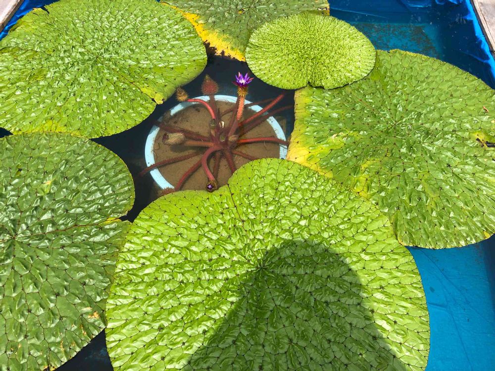 オオオニバス、の葉がクシャクシャだったのがシワが