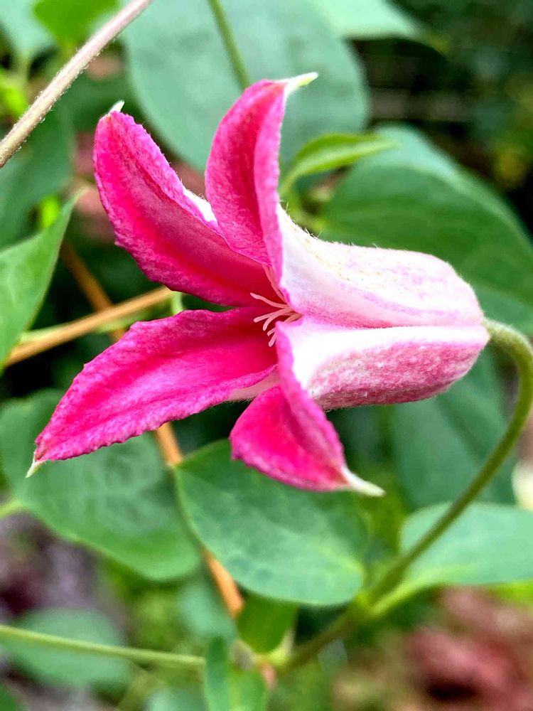 ちゃん、クレマチスなのでツル性ですね。この花の形が好きなのよ💕