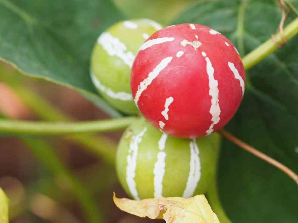 沖縄スズメウリの実の色が赤くなりつつあります。