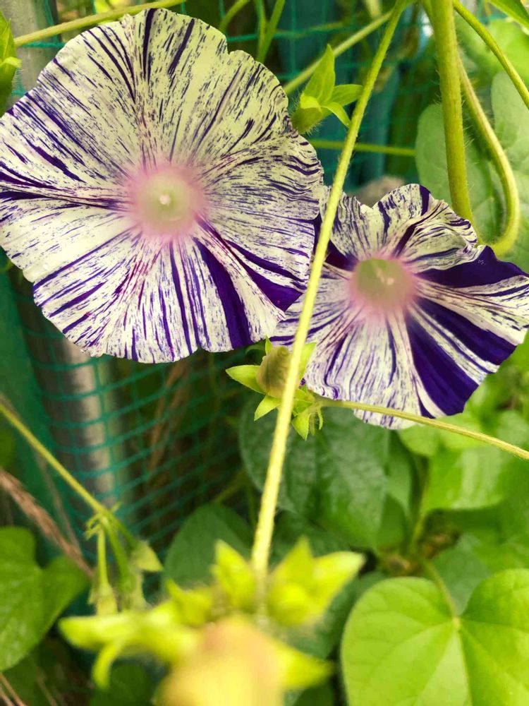 ドイツ朝顔、初めて見ました。美しい紫の絞りですね✨種からですか?
