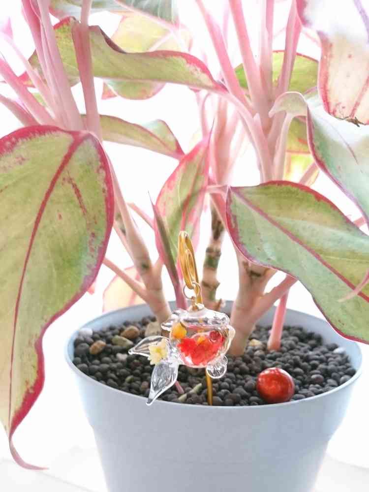 アグラオネマの鉢に、金魚ピックを挿しました(*^^*)