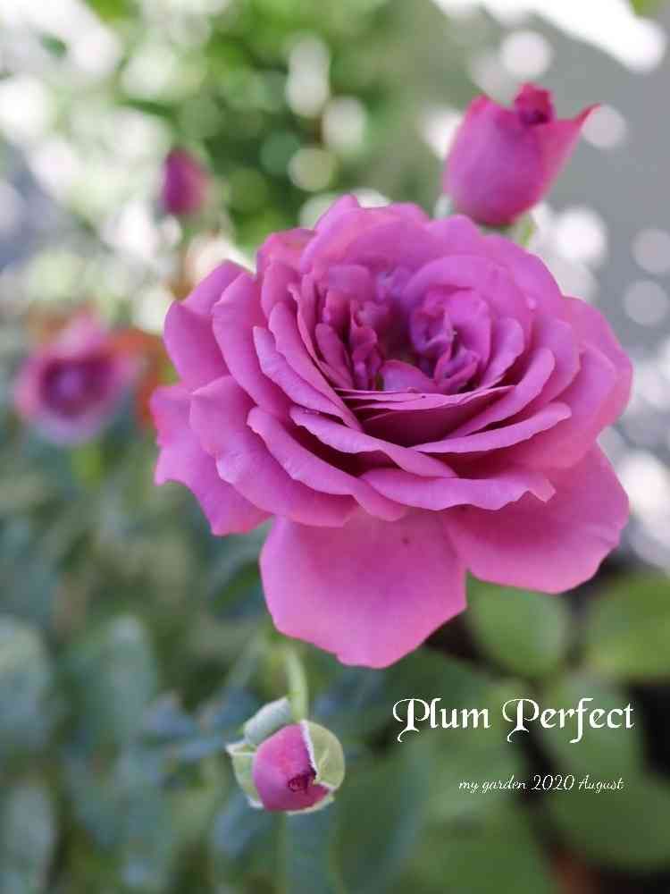 プラムパーフェクトが綺麗に開きました。遠目から見てあまり存在感はなく、どちらかと言うとひっそり咲いている感じですが、寄ってみるとこのプラム色には本当にうっとりしてしまいます。病気にとっても強い品種です。手のかからない紫色のバラをお探しの方にはおすすめです。