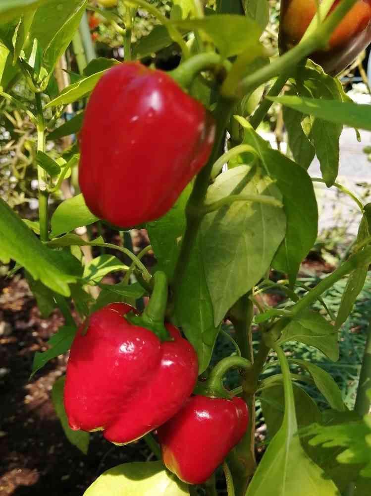 いっぱいの多肉植物の中に、真っ赤なパプリカすごく目立ちます😃