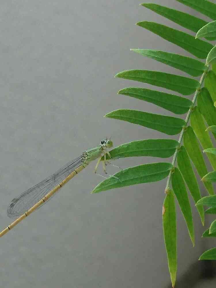 ベランダに迷いこんだイトトンボが、エバさんに止まりひと休み😊