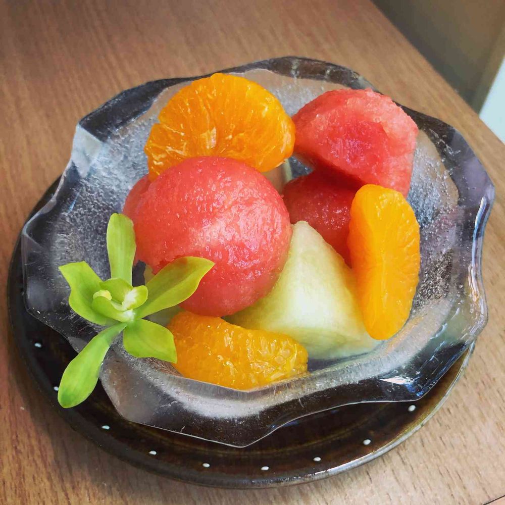 ダイソーさんで買った氷の器作りカップで、氷の器を作り、自家製スイカをフルーツポンチに!