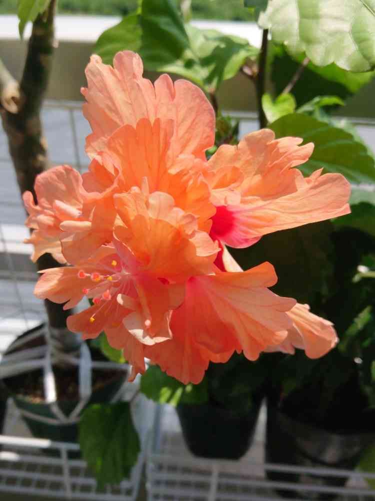 バルコニー/ベランダ,ハイビスカス オレンジ・フラミンゴ,花のある暮らしの投稿画像