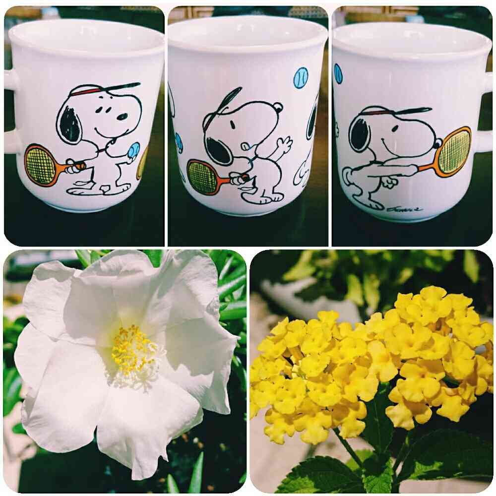 スヌーピーチャンはテニス🎾😃☀のサーブをしていたのでした😄10年以上の愛用のマグカップなのに、ちゃんと見た事がありませんでした😁