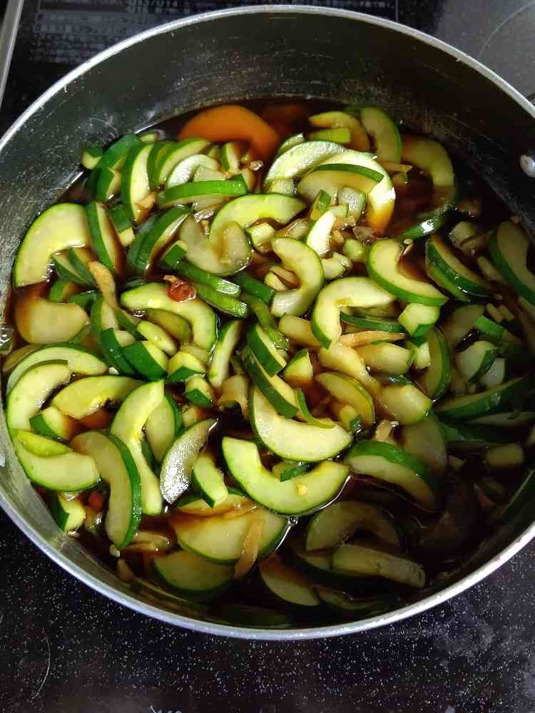 キューリのキューちゃん作ってます🎵昨日教えて貰ったレシピです。これ、一回目の漬け込み、キューリ取り出して、浸け液再沸騰させて三回繰り返すそうです☺️これで良いのかな⁉️