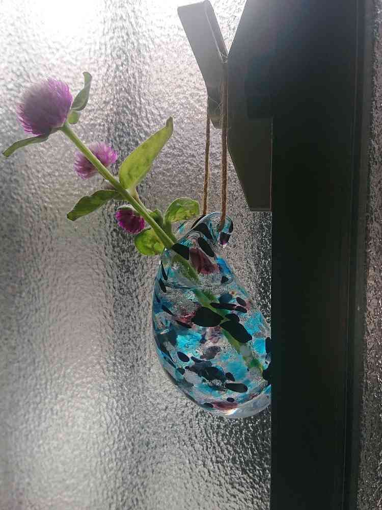 琉球ガラスの花瓶一目惚れで購入✨やっとお花が生けれました🌸琉球ガラスって可愛い💕