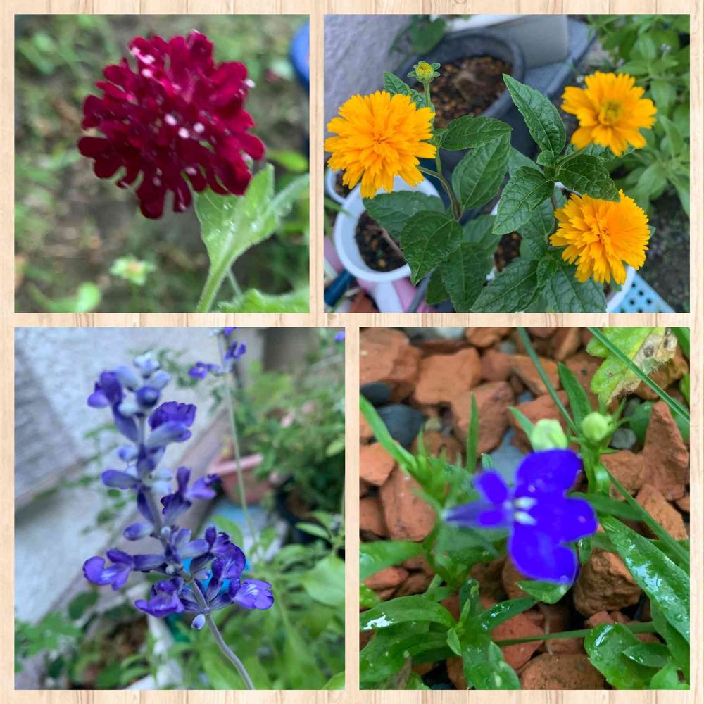 右下のロベリアはビニールを被せていましたが、豪雨で株の9割がた枯れてしまい、残った1割が奇跡の開花💙