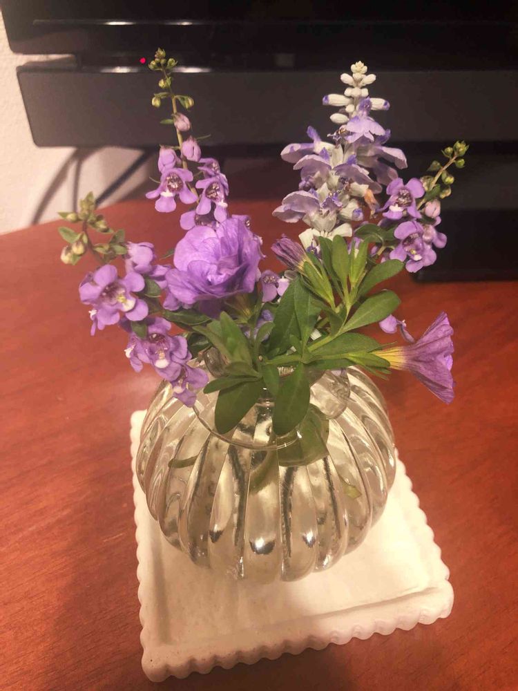 珍しく紫系。夏に強いお花たちは毎日ぐんぐん成長するので花採りが本当に大変…。