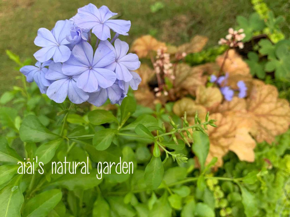去年の夏に作ったものですが、そのままの形で冬越しして2年目、またルリマツリが花を見せてくれました。